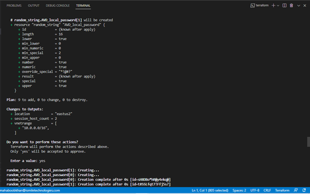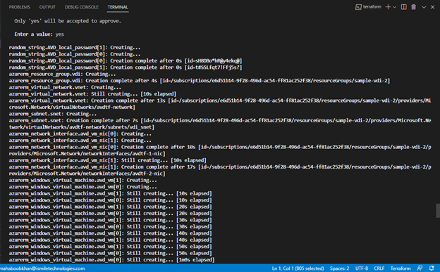When you type “yes”, you’ll see how Terraform automatically deploys your resources in real-time.