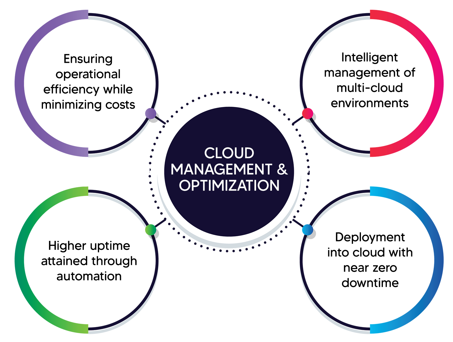 Cloud management and optimization is critical to keep the systems running up in the cloud. If required, we cause significant changes to the organization’s operating model and mindset. We aim to provide more control and autonomy to users over the estate. We undertake cost management and optimization, provisioning, automation, collect performance and availability metrics, along with prioritizing and management of workloads.