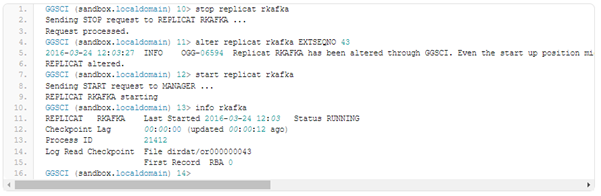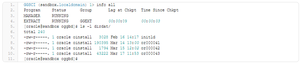 Now the ongoing replication needs to be created. Our extract is up and running, and passing changes to the replicat side to the directory ./dirdat