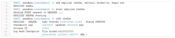 We only need to add and start our rkafka replica for the Big Data GoldenGate.